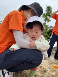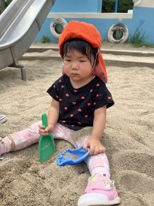 足で砂をふみふみ、足が沈む感覚に不安そうな表情を浮かべていましたが、慣れてくると次第に笑顔が見られました🥰