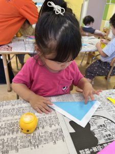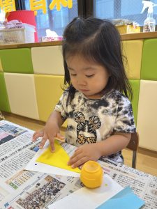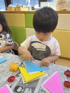 「アリさんくらい小さく糊を付けてね」というお話をしっかり聞いて、このくらいかな?と試行錯誤しながら集中して取り組んでいます☺️