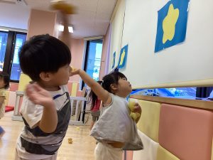 続いてゲームの時間には星に目掛けてボールを投げて遊びました!