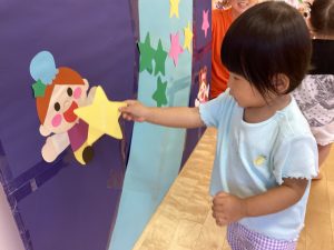まずは七夕ってどんな日なのかをスケッチブックシアターのお話で知った子どもたち!