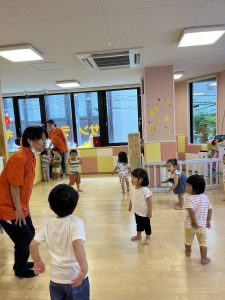 お友だちや保育士と一緒に取り組むことで一緒に取り組む楽しさ、