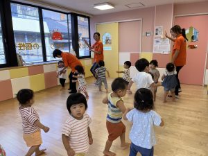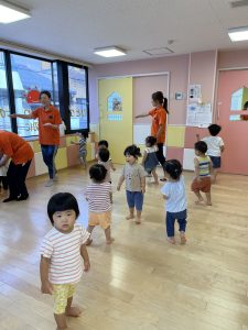 ピアノの音を聞いて歩いたり、走ったり、音が聞こえない時にはピタッと止まる「ストップアンドゴー」の様子です✨
