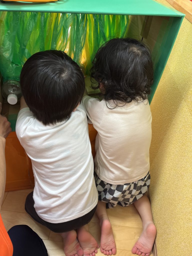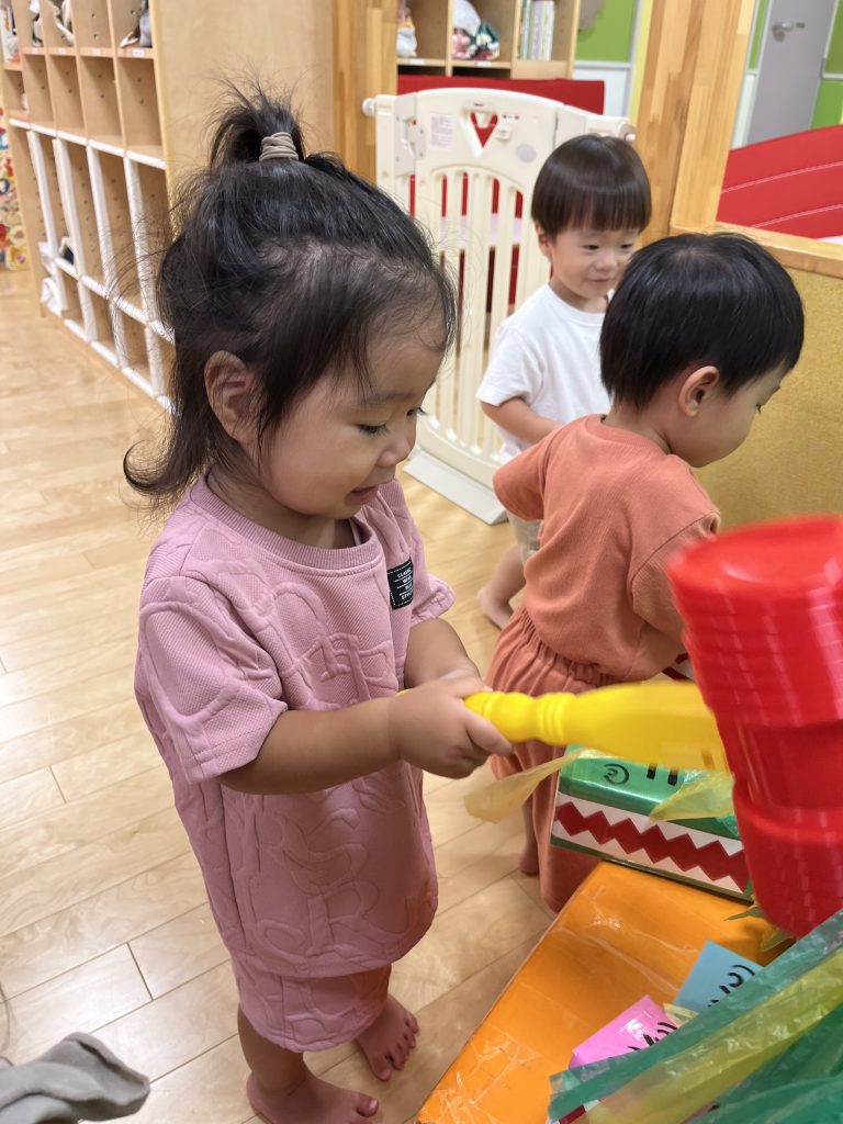 一方でその裏側ではワニさんを叩かれてないように出し入れして楽しむお友だちが!