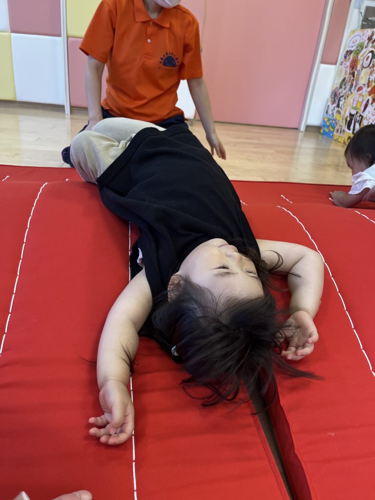 マットのお山では転がって遊ぶ子や頂上からジャンプして遊ぶ子がいました。