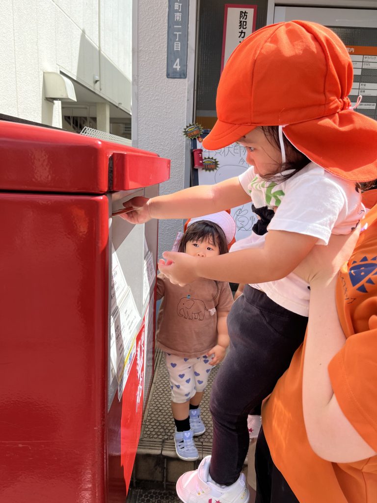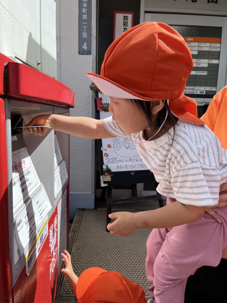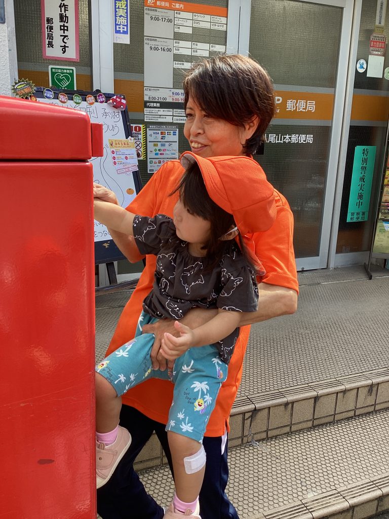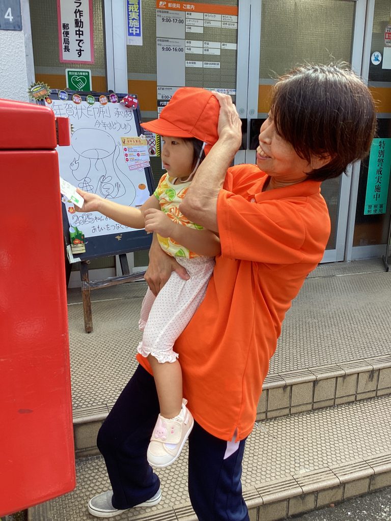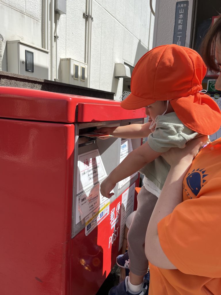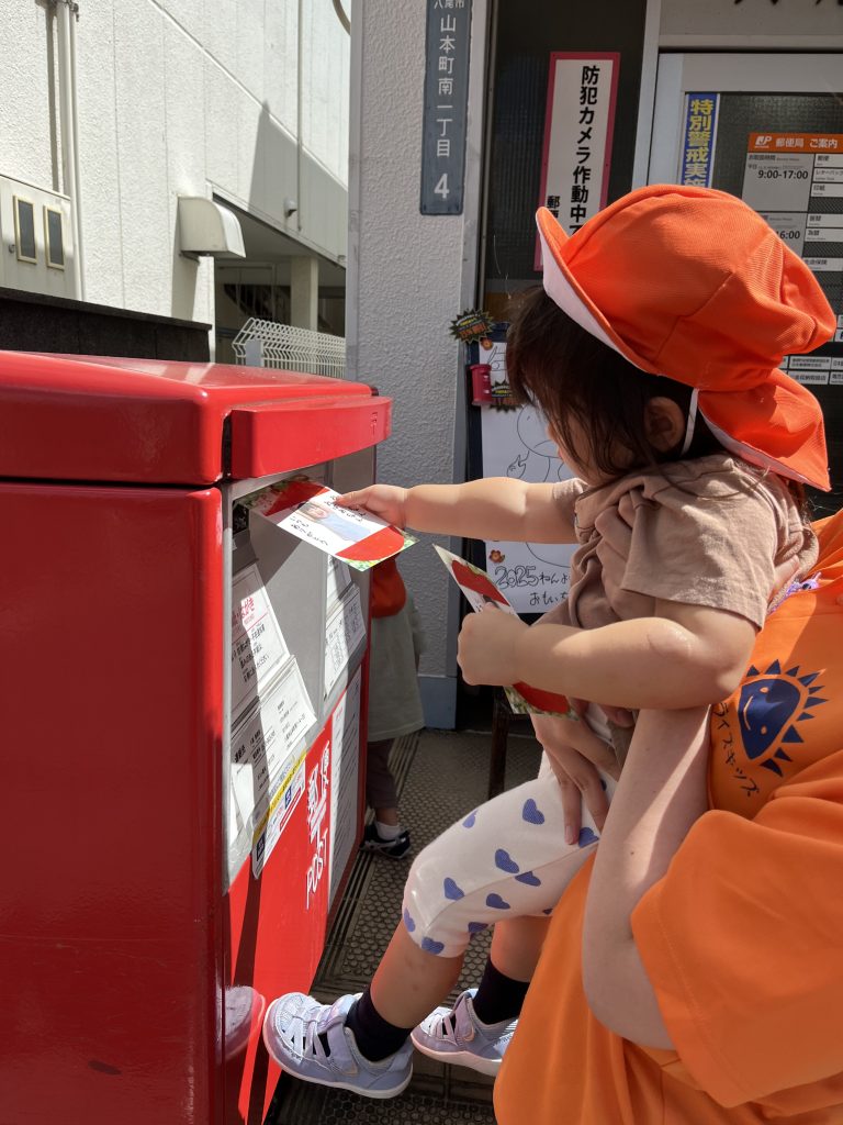 気温の高い中ではありましたが、郵便局までお手紙を届けるために頑張って歩いた子どもたち!