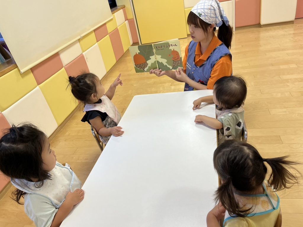 絵本の中のどんぐりさんの真似っこがとても上手ですね🥰