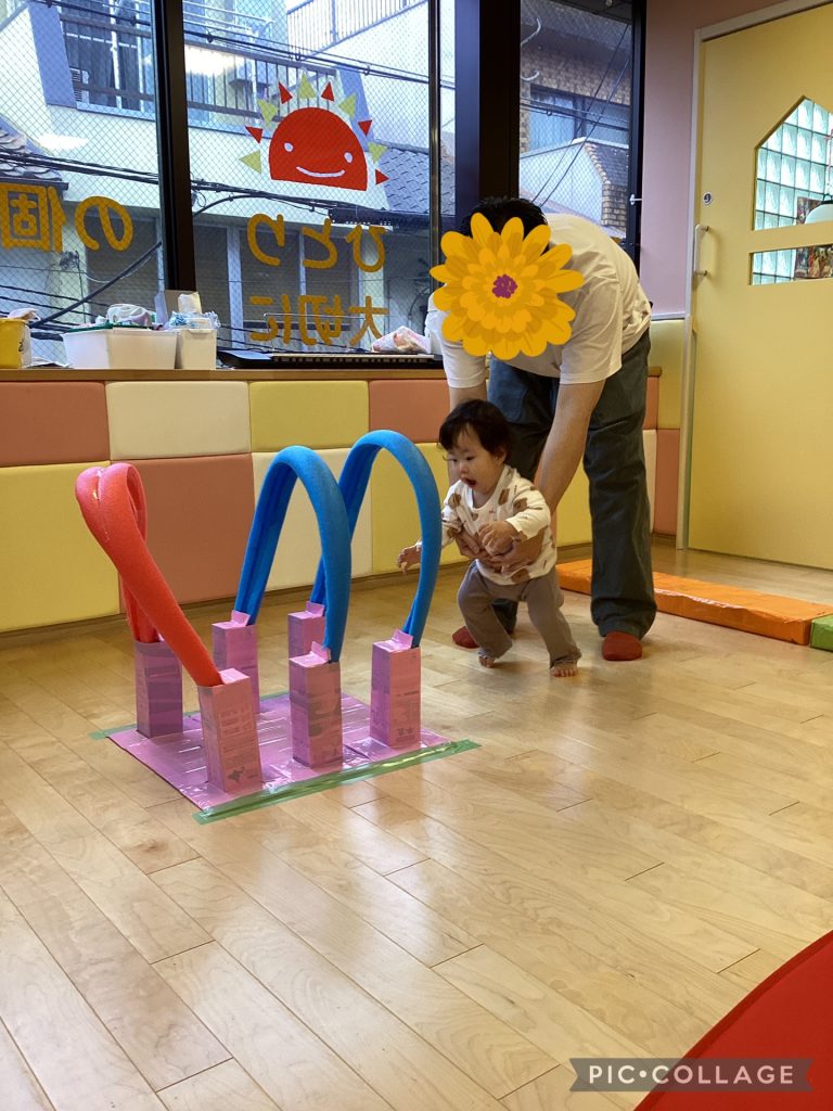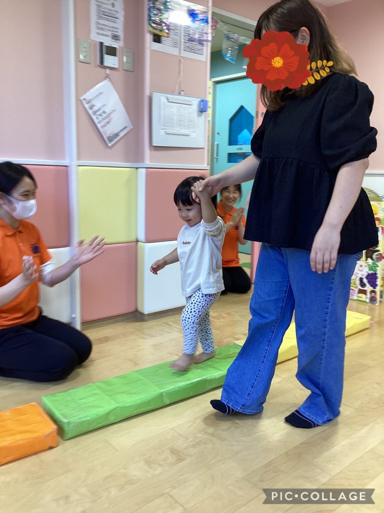 ママ、パパと一緒に障害物を「よーいどん」の掛け声でハイハイしたり、ダッシュする姿がありました👏
