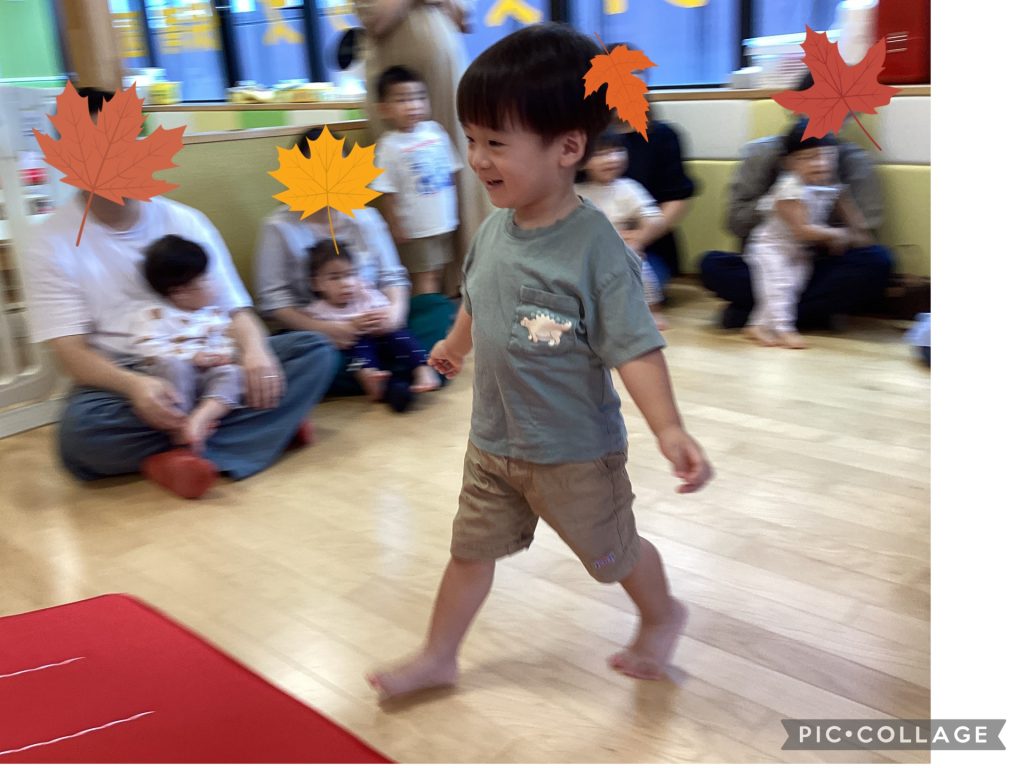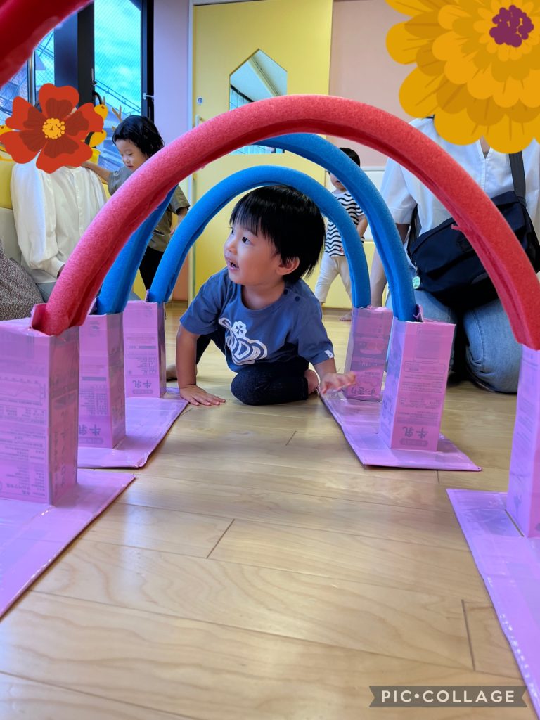 ママ、パパと一緒に障害物を「よーいどん」の掛け声でハイハイしたり、ダッシュする姿がありました👏