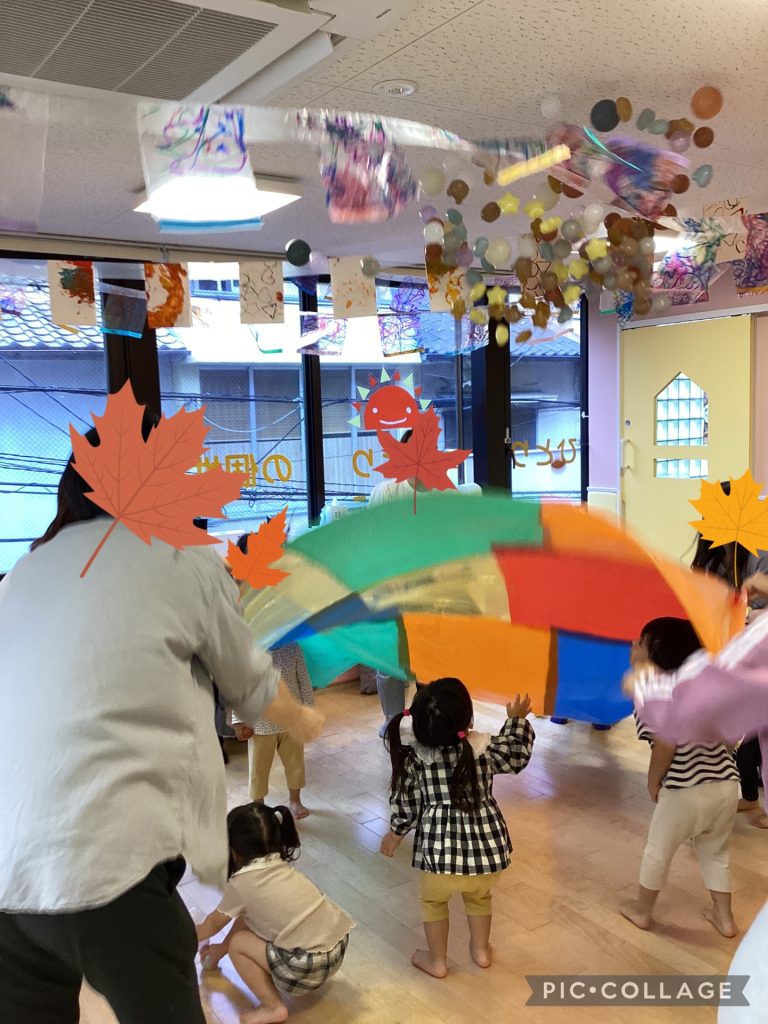お母さん、お父さんに協力していただき手作りパラバルーンで遊びました✨