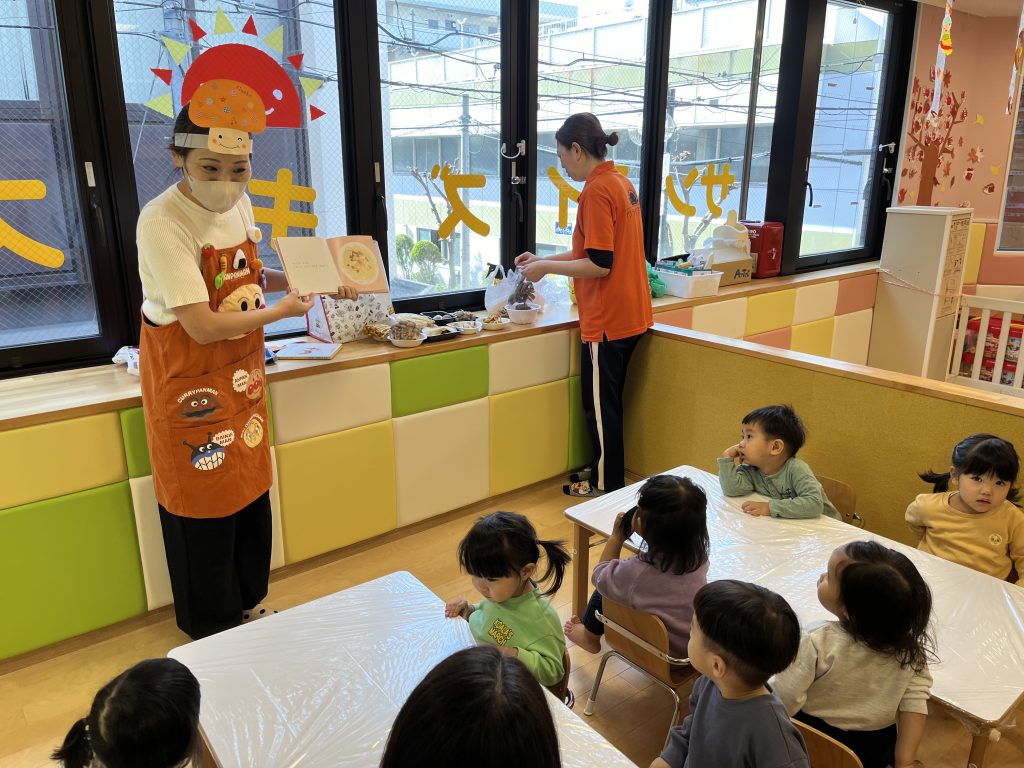 給食できのこを食べたり、きのこのおうたを歌ったりする中できのこに親しみが芽生えて「食べてみたい」と思えるよう楽しい食育活動をしていきます☀️