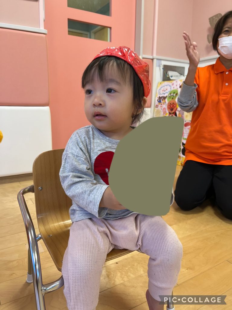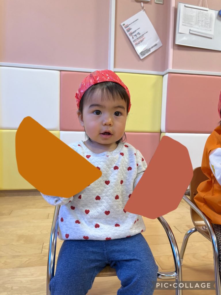もも組さんは帽子を被って何かを持っているようです😄