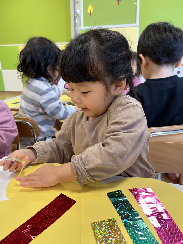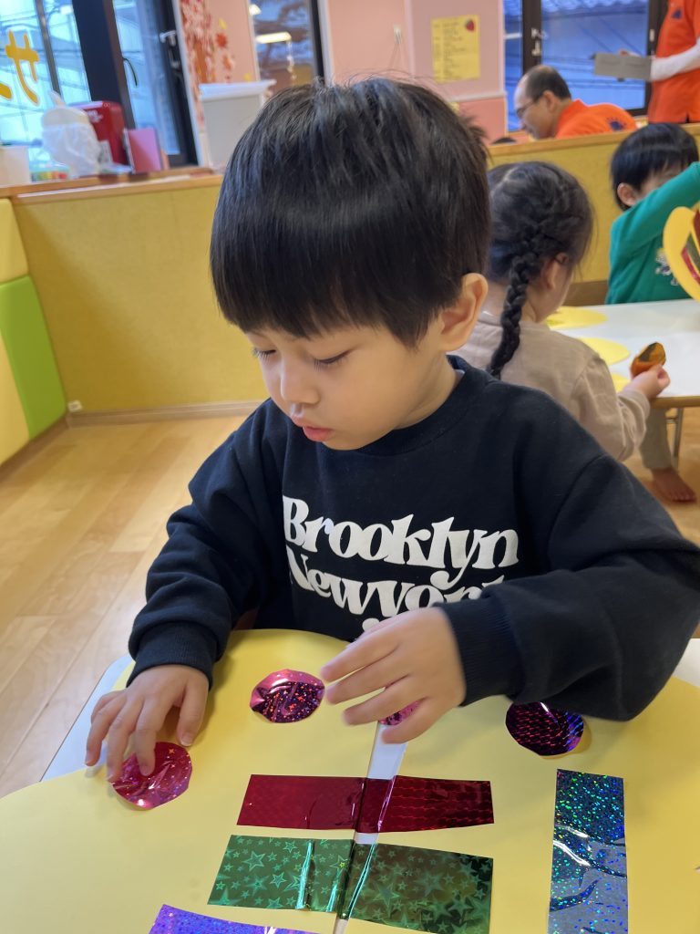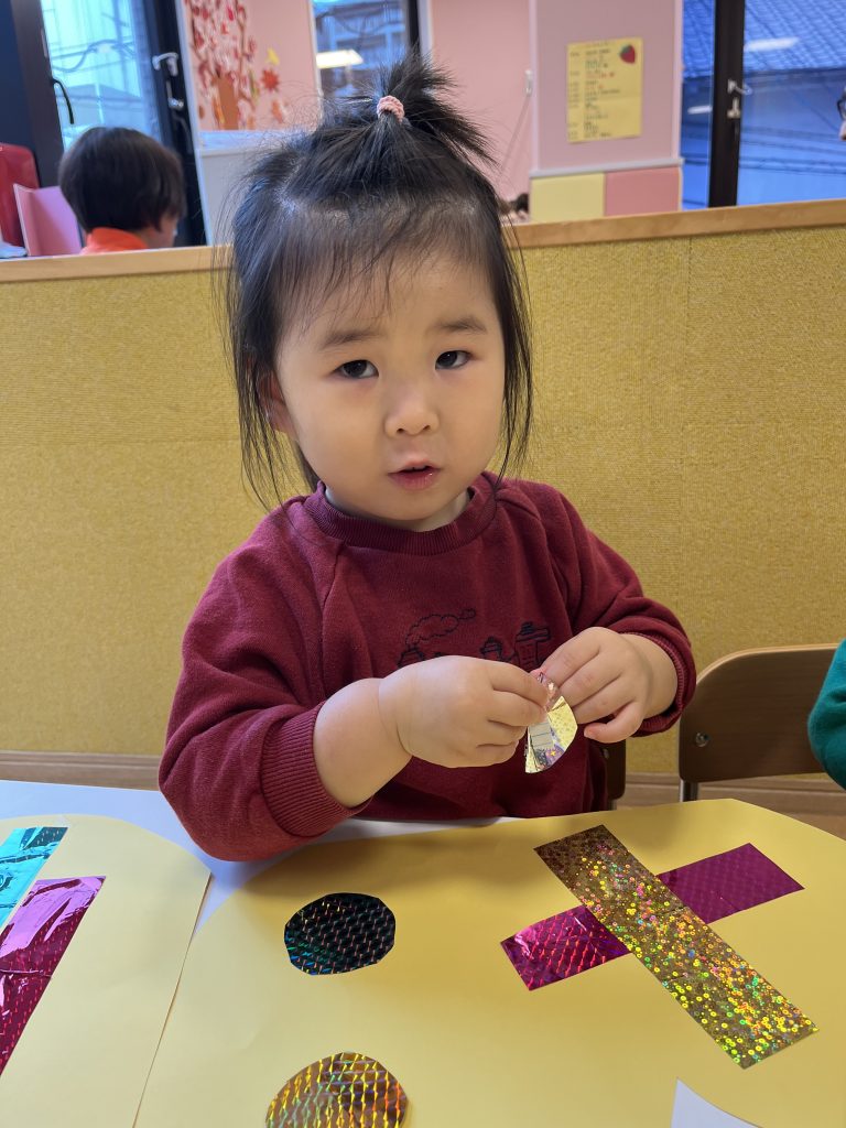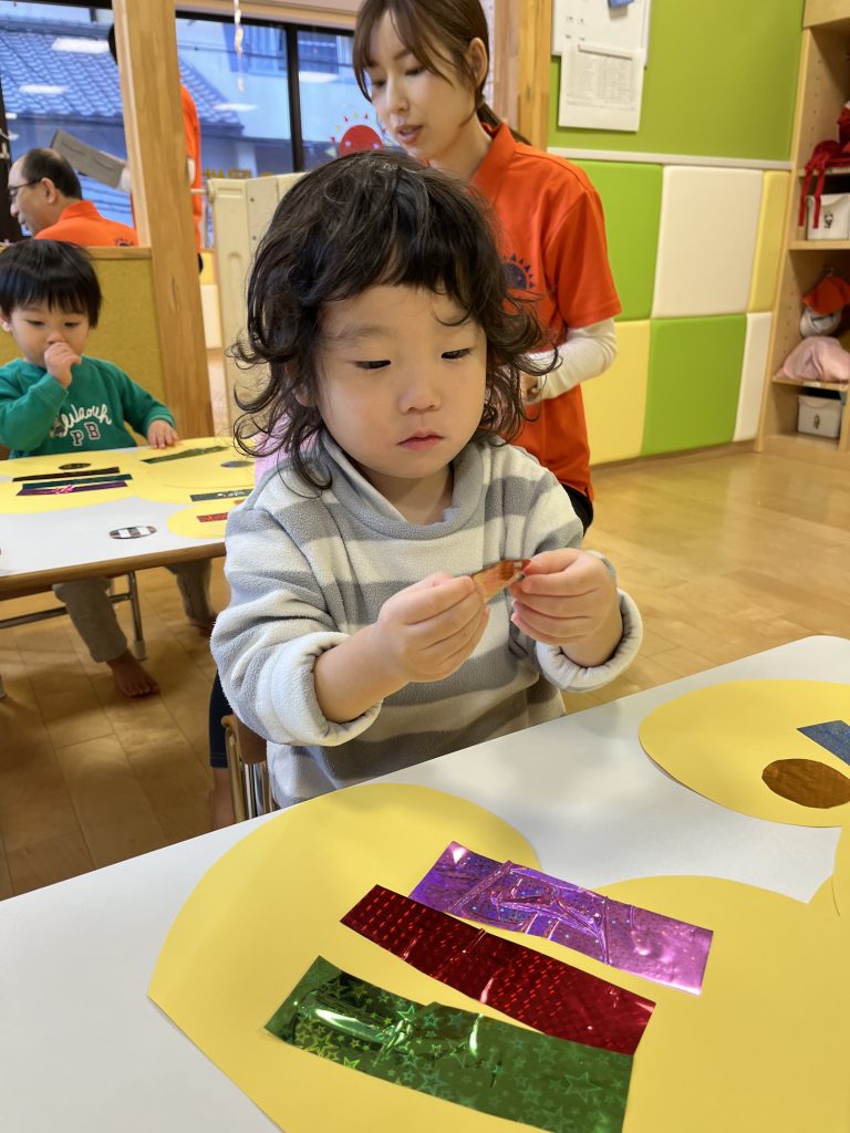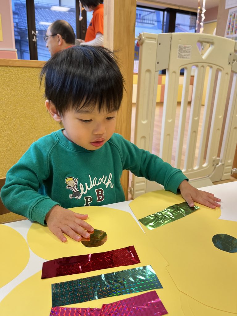 色や形にこだわる子、貼り方にもこだわる姿がありました!
