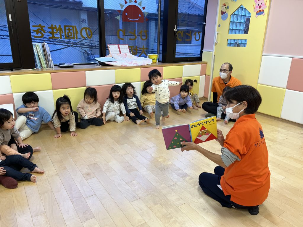 0歳児さんから2歳児さんまでのお友だちみんなが大好きで、「さんかくサンタよんで〜」と読み合いを楽しんでいますよ🎶