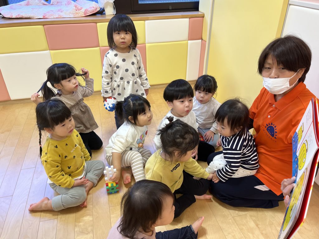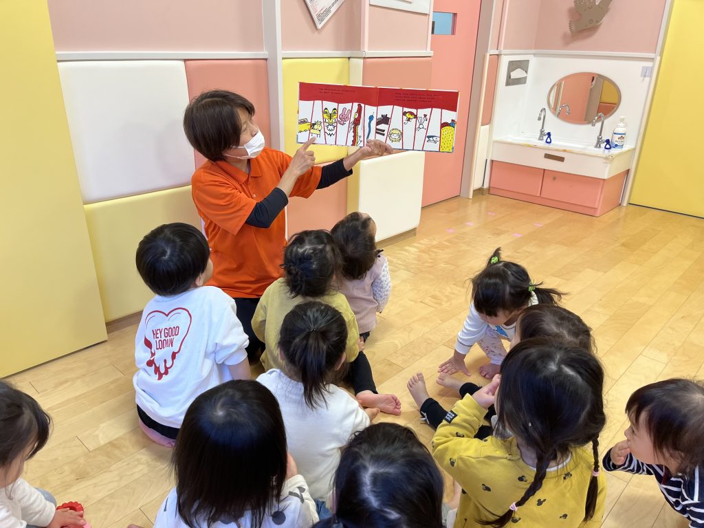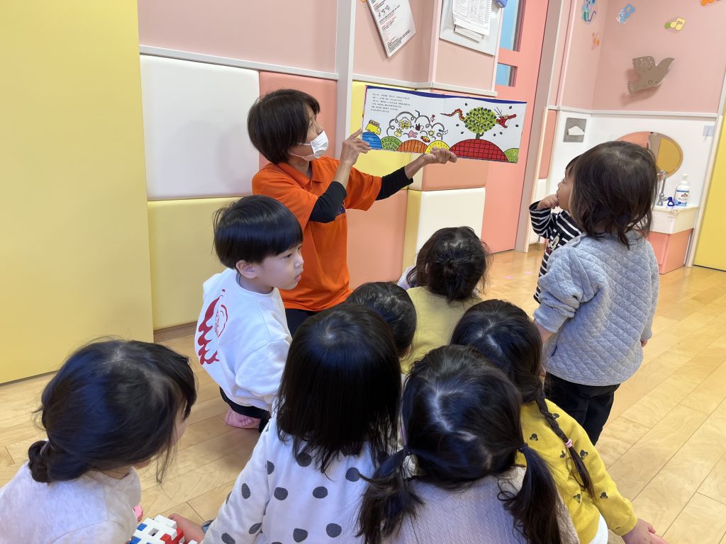 お話の中で「ふーふー」と息を入れるところでは子どもたちも一生懸命に息を吹きかけていて可愛らしかったです😆