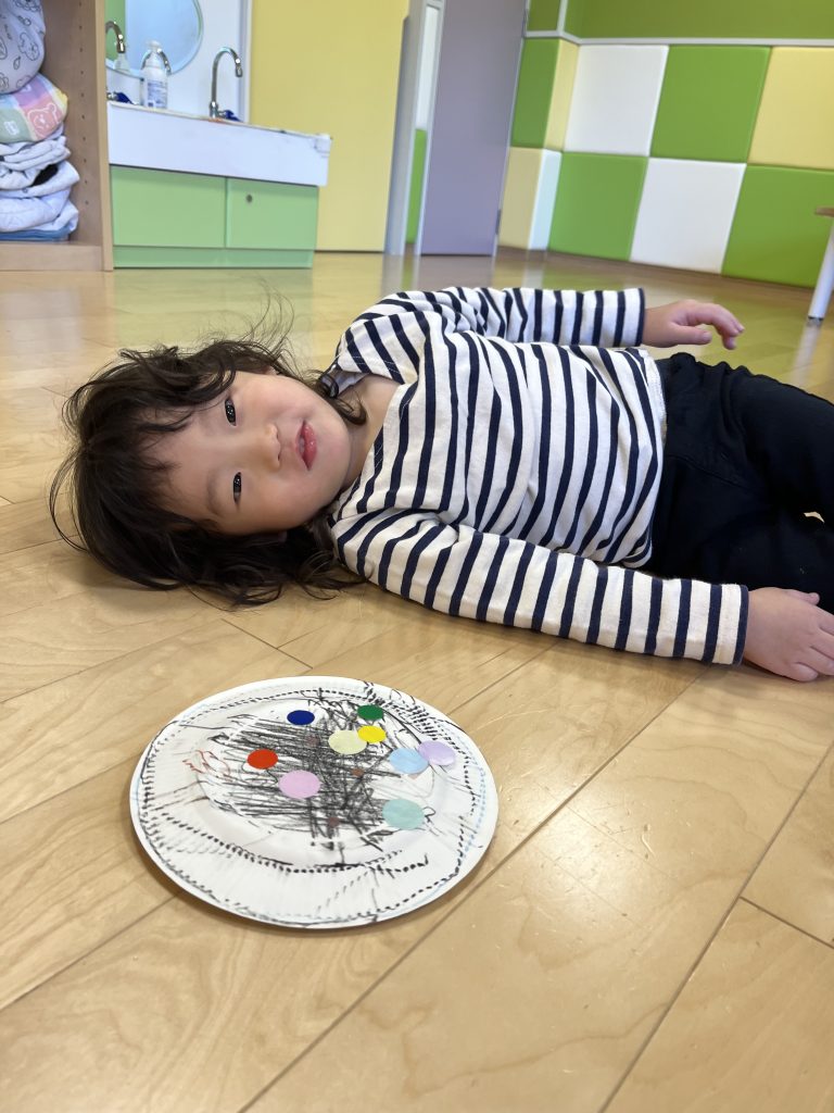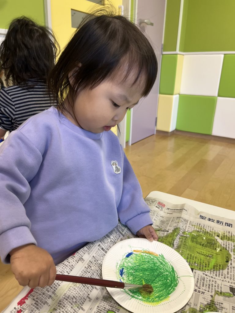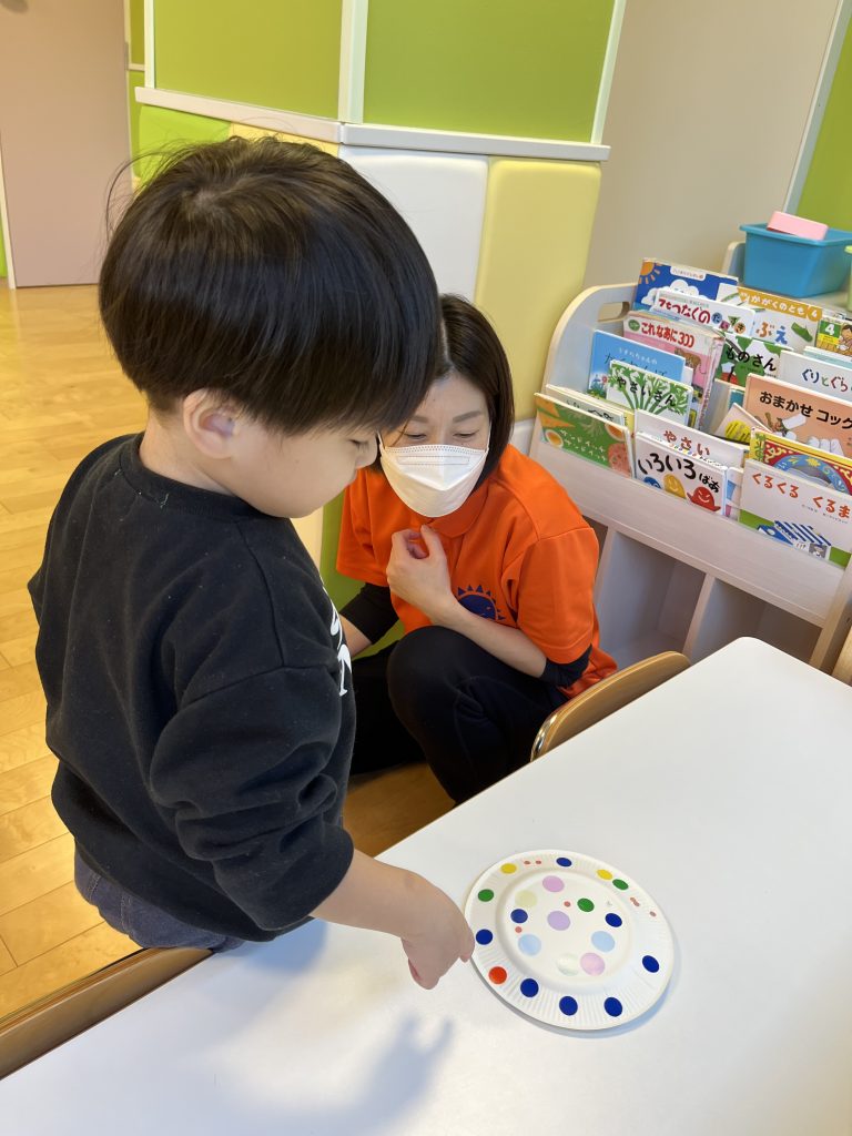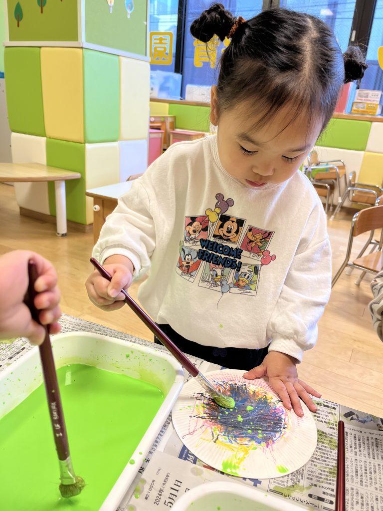 絵の具が浮いてしまうのを見て「先生〜できない〜」と不思議そうな子どもたち🎨様々な技法に触れて絵の具遊びを楽しんでいきたいと思っています🖌️