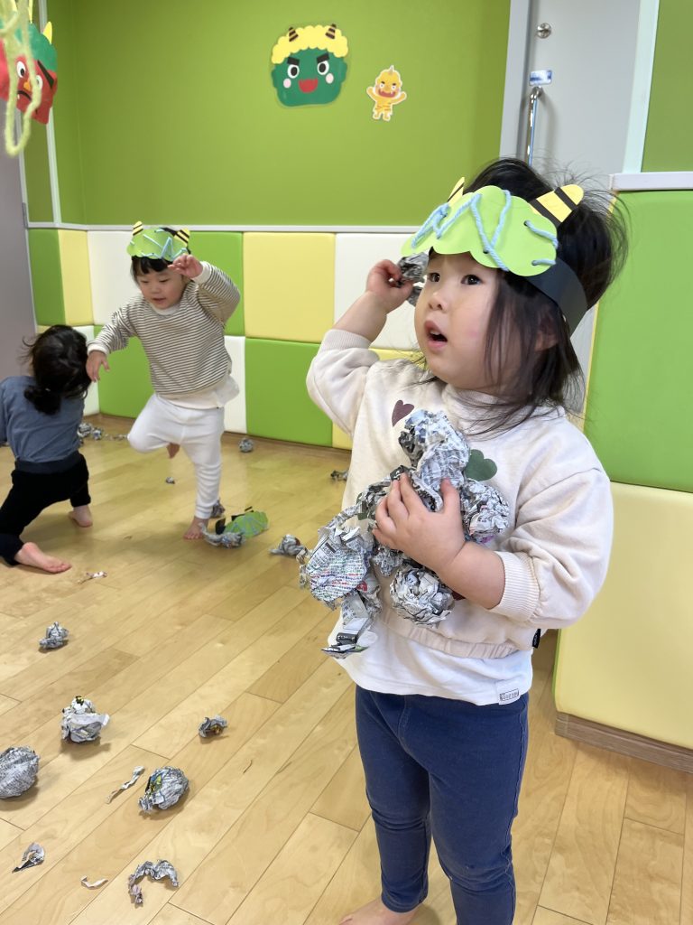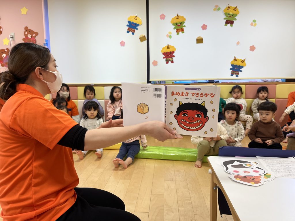 子どもたちに「鬼さんにお豆投げられるかな?」と問いかけると「できるよ!!!」と自信たっぷりのお返事を聞かせてくれました🌟
