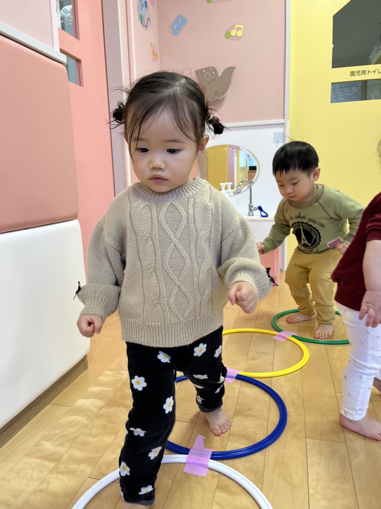 フラフープをてくてく歩いたり、ジャンプをしていくお友だちもいました🦵