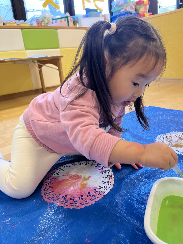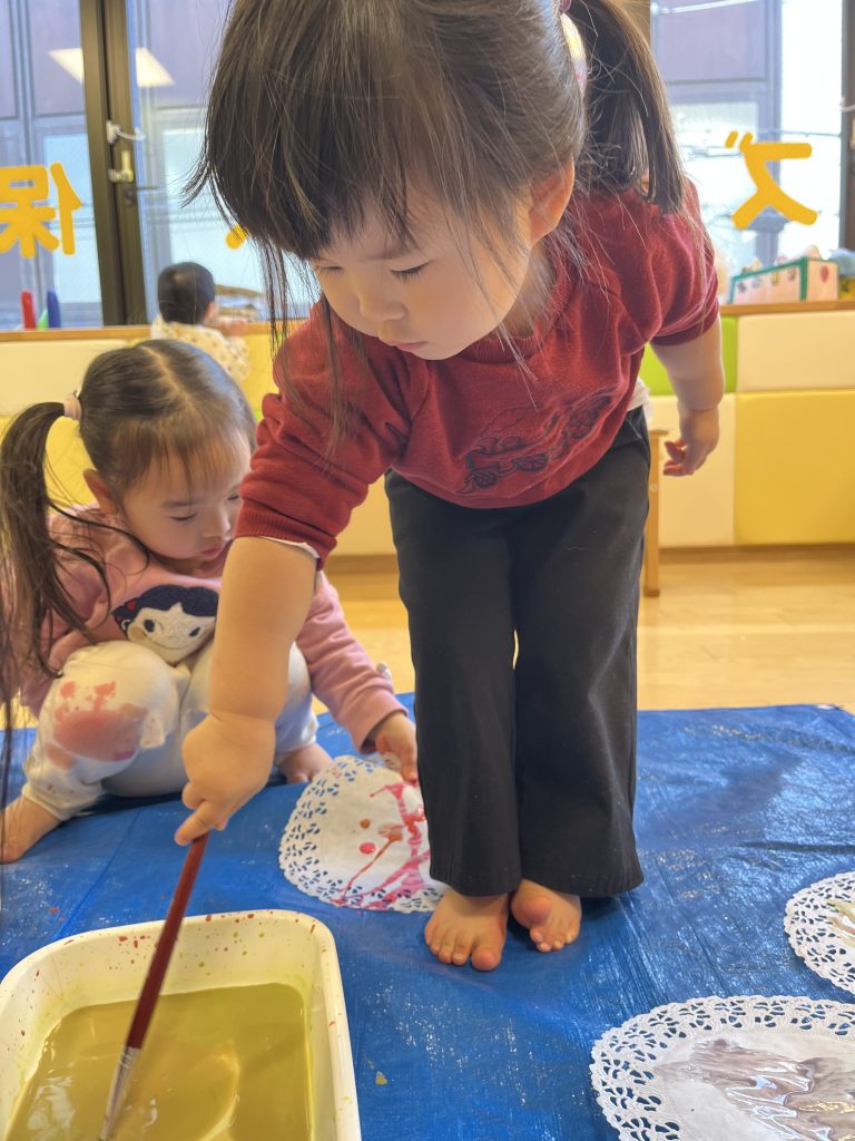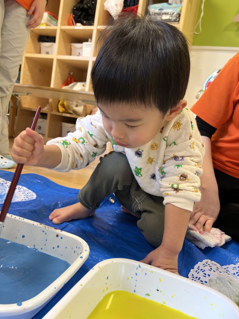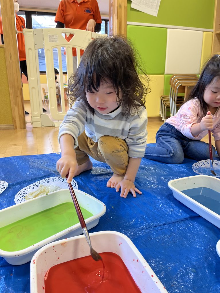 絵の具でダイナミックに遊ぶことができるのも保育園ならではなので、たくさん気づきを得たり、興味を持って取り組んでいってほしいですね🥰