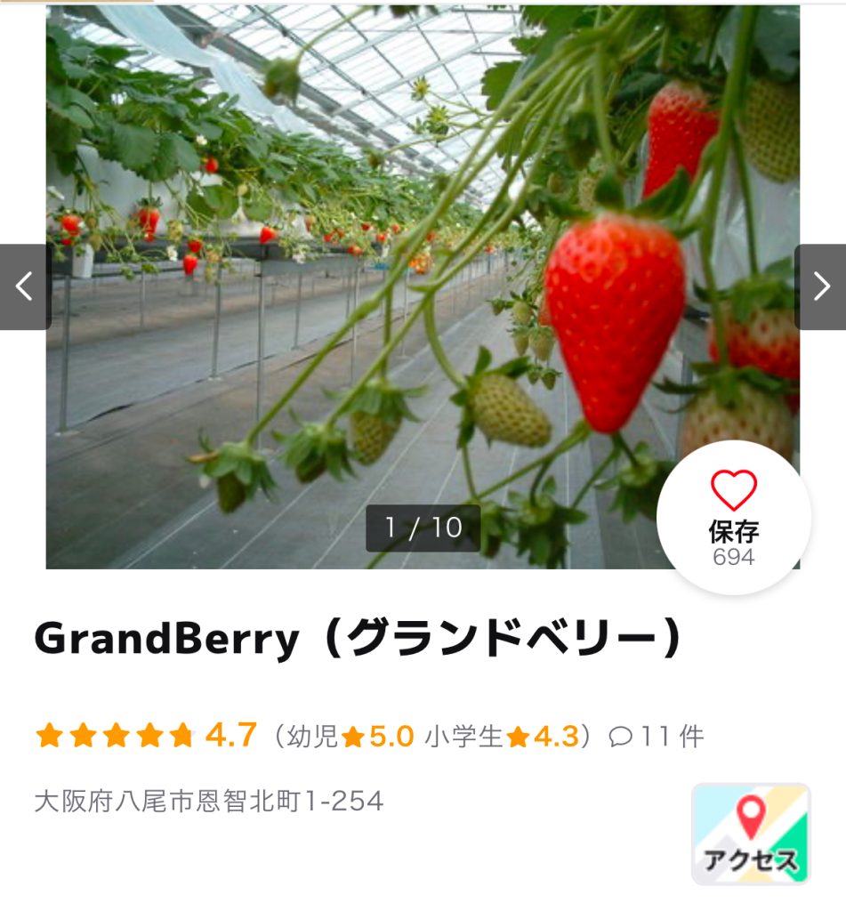 グランドベリーは大阪府八尾市、街中でおいしいいちごがたっぷりと楽しめるスポット。