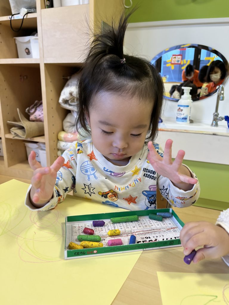 クレヨンの蓋にクレヨンを並べて「どれにしようかな〜」と選んでいる姿もありました🤭