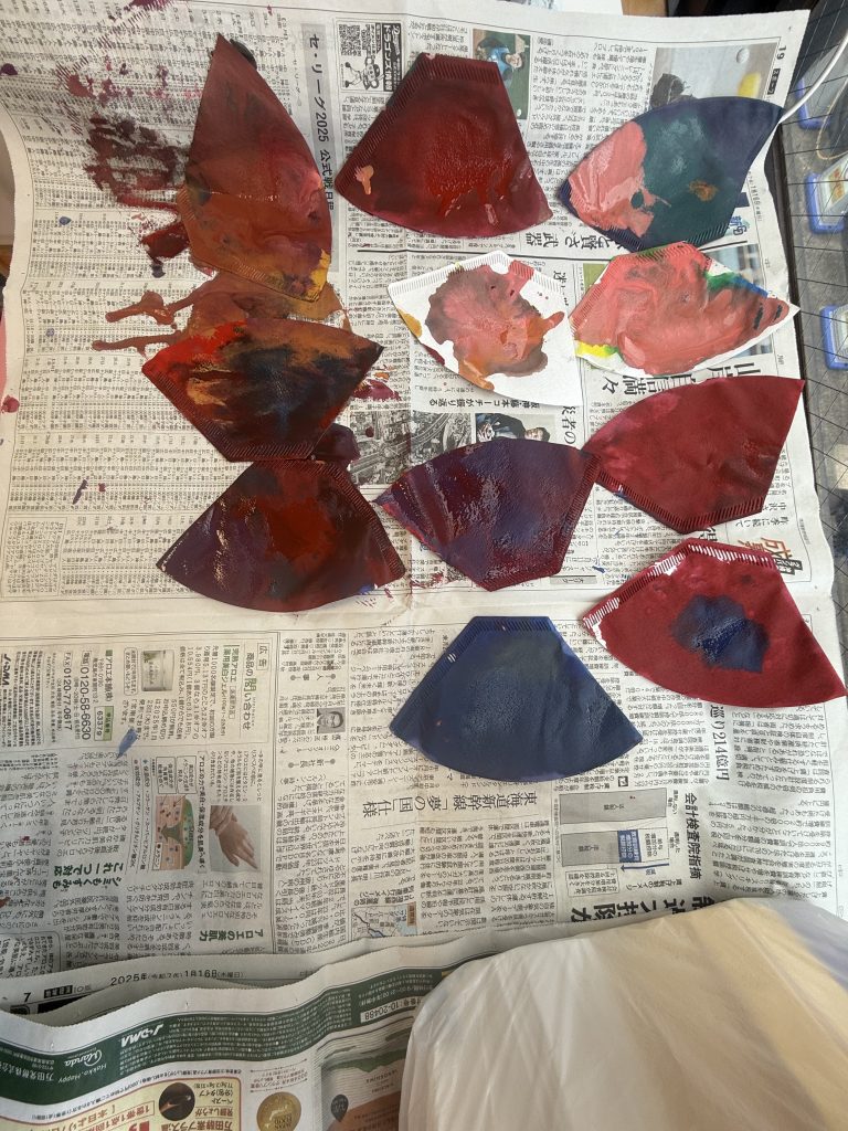 自分の好きな色を筆でちょんちょんしていき、色の混ざりを楽しむことができました🌟