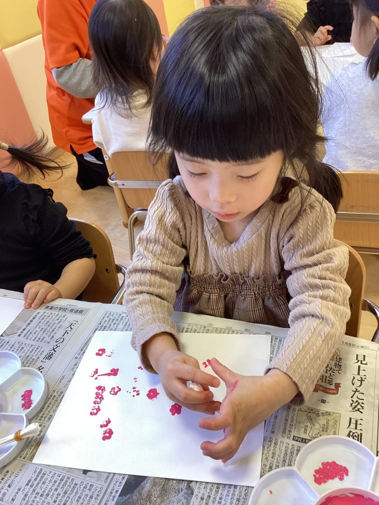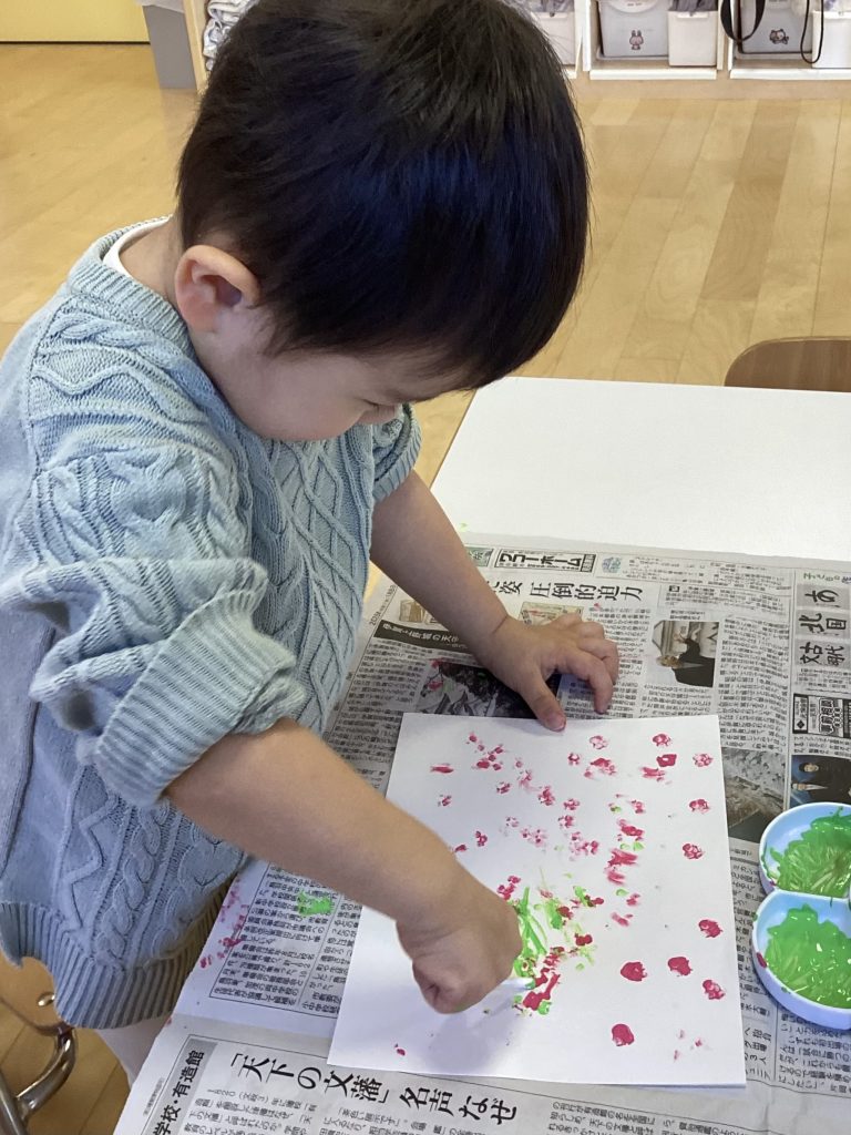 自分の好きな色を筆でちょんちょんしていき、色の混ざりを楽しむことができました🌟