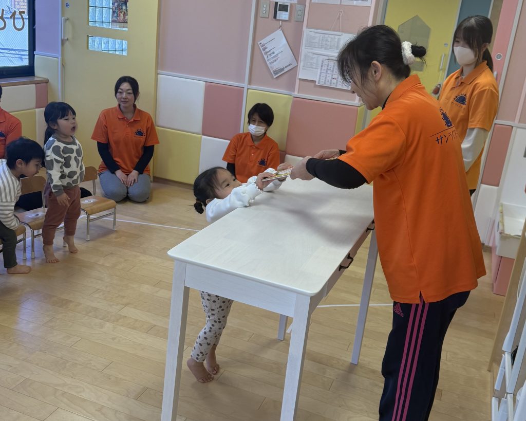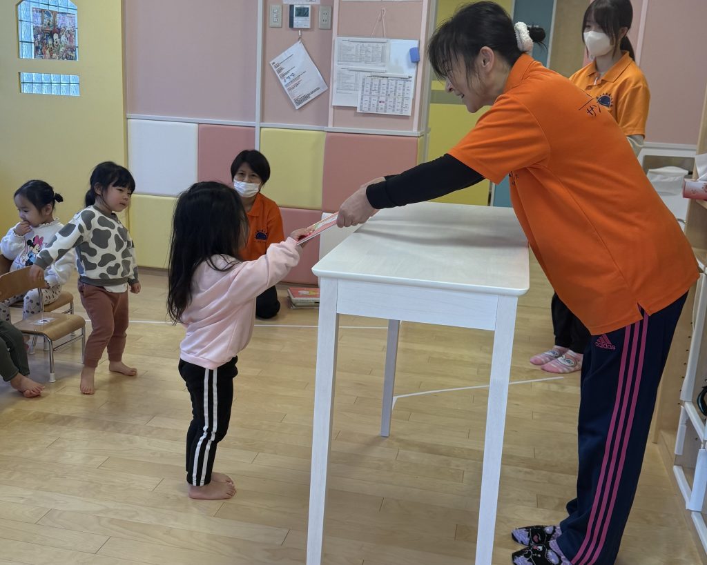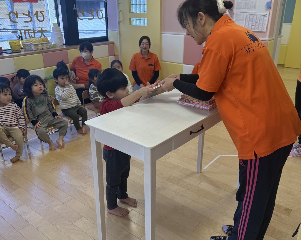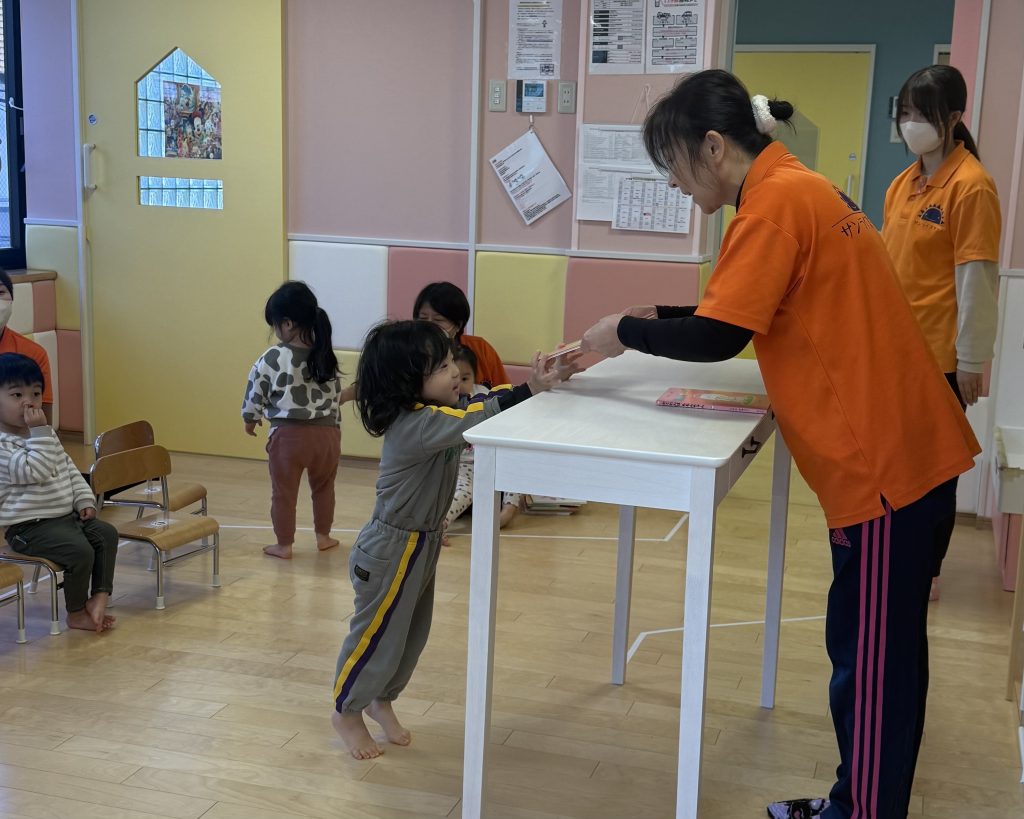 練習では全員が園長先生から証書がわりの絵本を受け取ることができていました👏