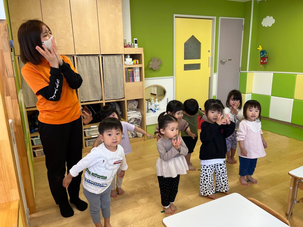 お名前を呼ばれるとりんご組さんだけでなく、いちご組さんも手を挙げてお返事ができるようになってきました♪