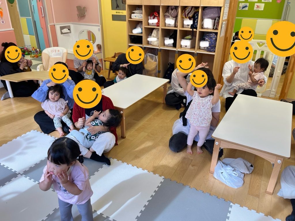子どもたちのやる気を引き出すアンパンマンの手遊びでは子どもたちもお母さんから離れてご機嫌に手遊びを楽しんでいました🫶