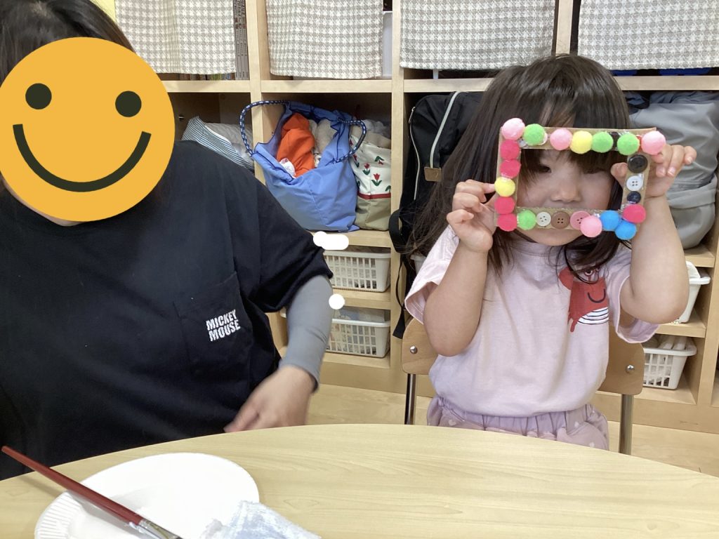 もも組さんといちご組さんは紙粘土と花紙を使った写真フレーム作りをしました📷