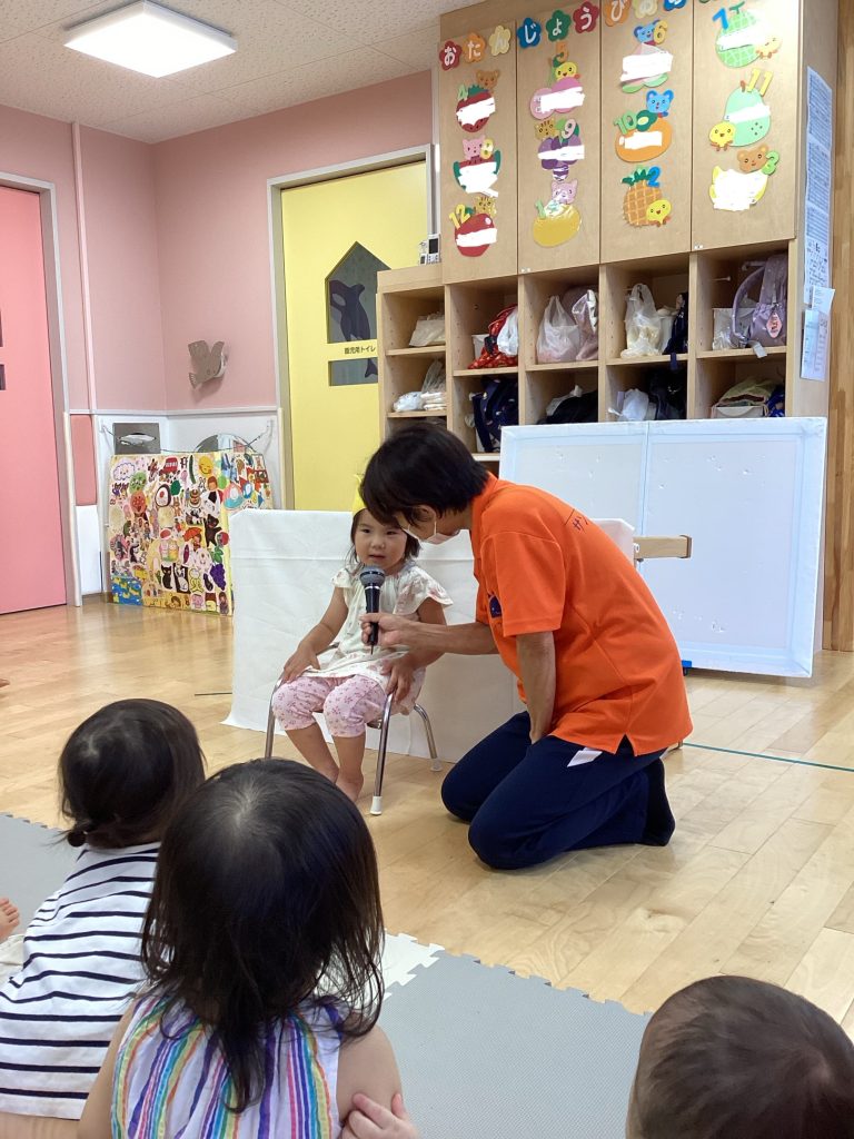 3歳の誕生日です!先生からインタビューを受けて少し緊張していましたがニコニコ笑顔で答えてくれました👏