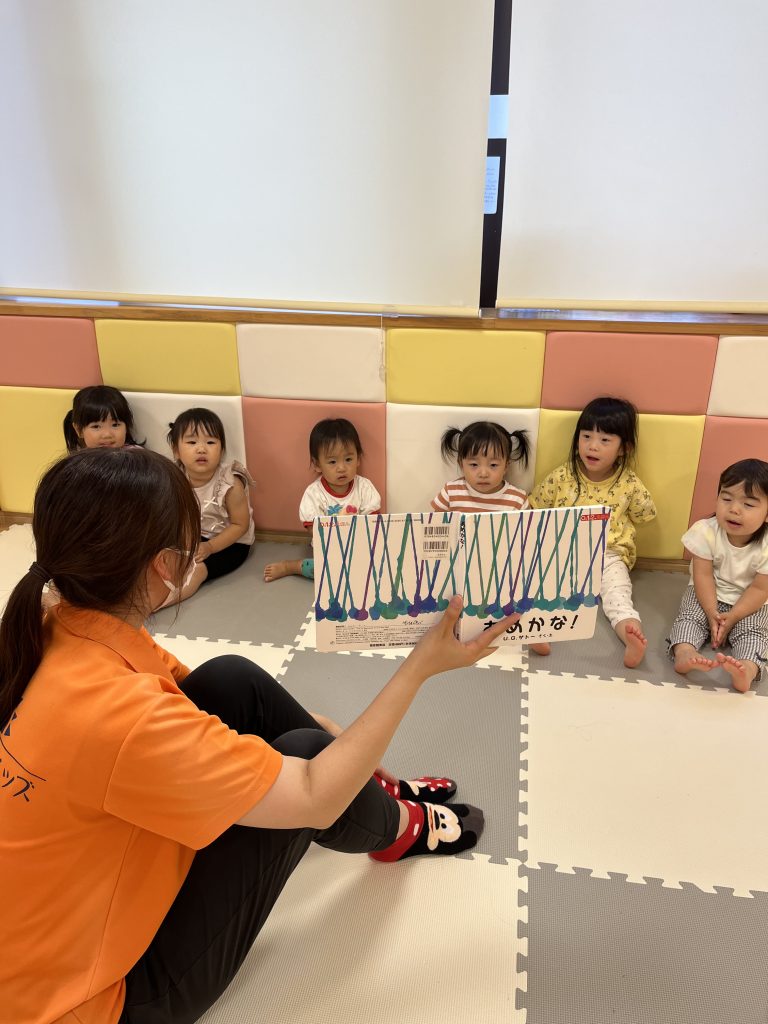 「ぽつ」と雨が落ちてくる描写では、子どもたちもツンと絵本を触って楽しんでいます💧