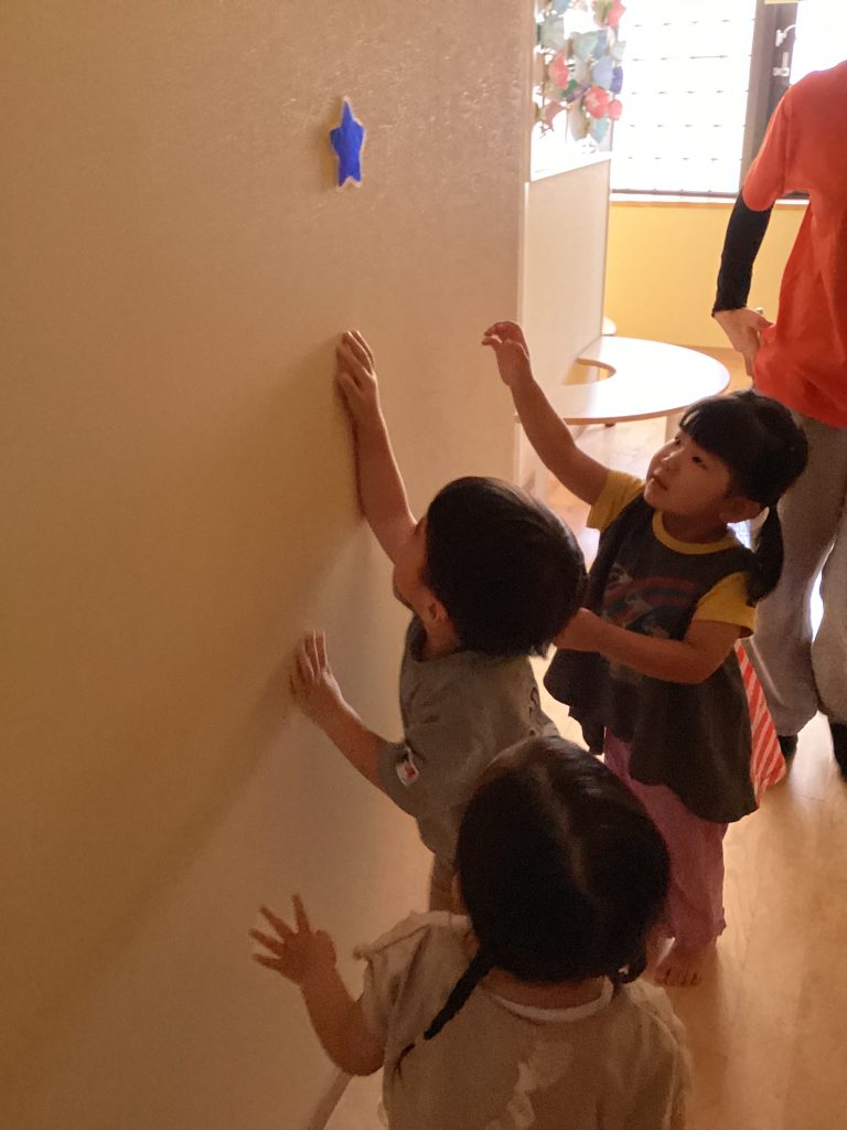 天の川を作るための星探しの活動ではりんご組さんが保育園を探検して星を探しに行ってくれました🌟