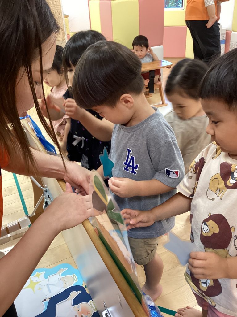 七夕のお話を聞いた子どもたちは「イヤイヤしてたんだね」とお話に親しみを持つ姿も見られました😊
