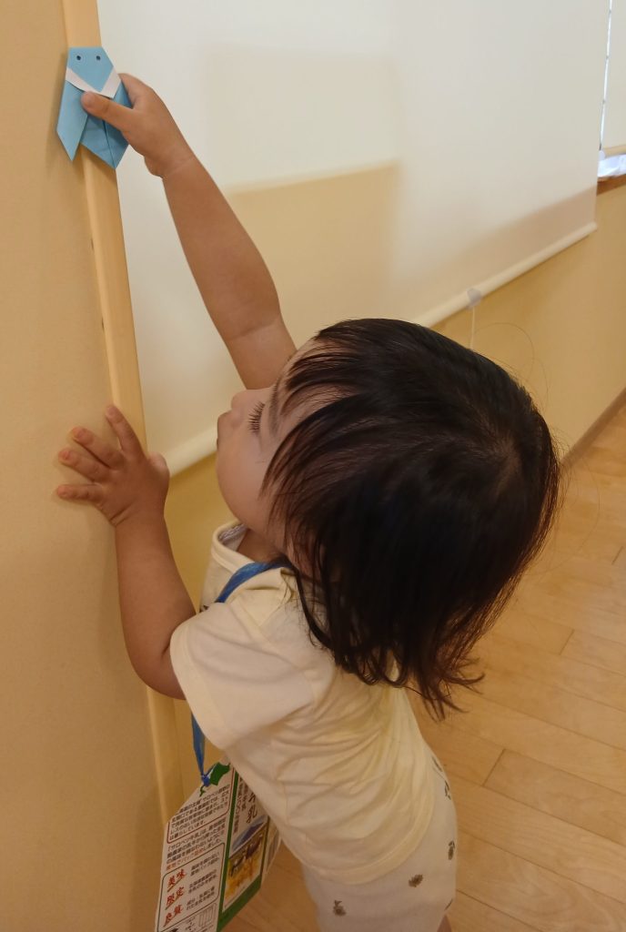 高いところにいるセミに手を伸ばしたり、先生の背中についているセミを見つけて大興奮💕