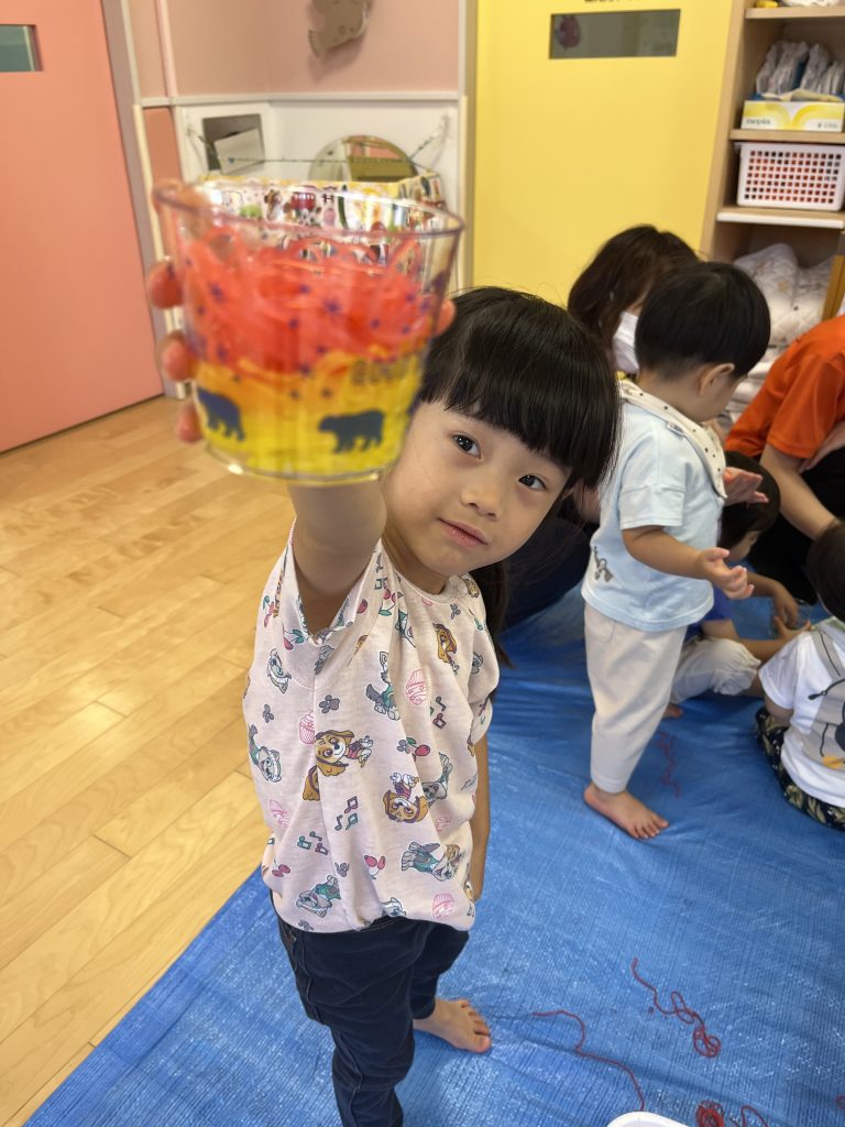 先生が「何作ったの〜?」と聞くと「アイスのかき氷!」「ハピバースデーツーユーだよ!」と教えてくれました🤭