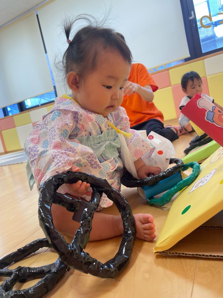 低いところ高いところ、柱の横やカーテンの裏、先生にヒントをもらいながらも自分で見つけたミャクミャクに愛着を見せる姿がありました💕