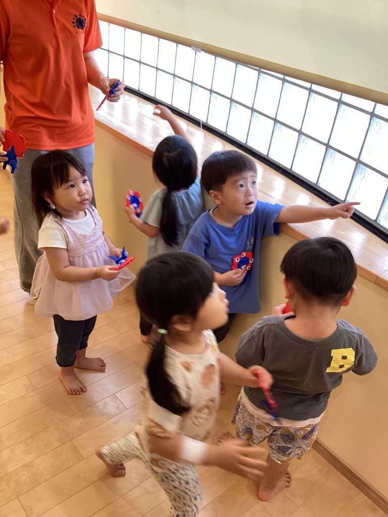 低いところ高いところ、柱の横やカーテンの裏、先生にヒントをもらいながらも自分で見つけたミャクミャクに愛着を見せる姿がありました💕