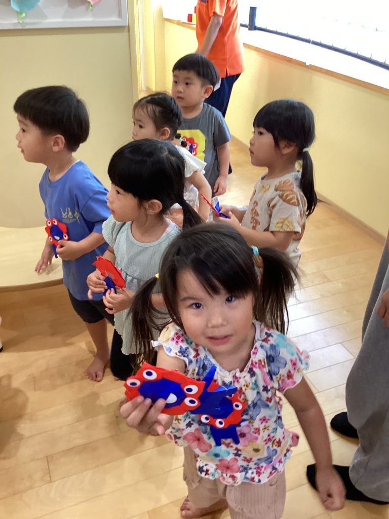 「怖いよ〜」と言うお友だちもいましたが、先生と一緒にピコピコハンマーでやっつけました💥