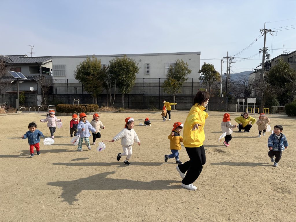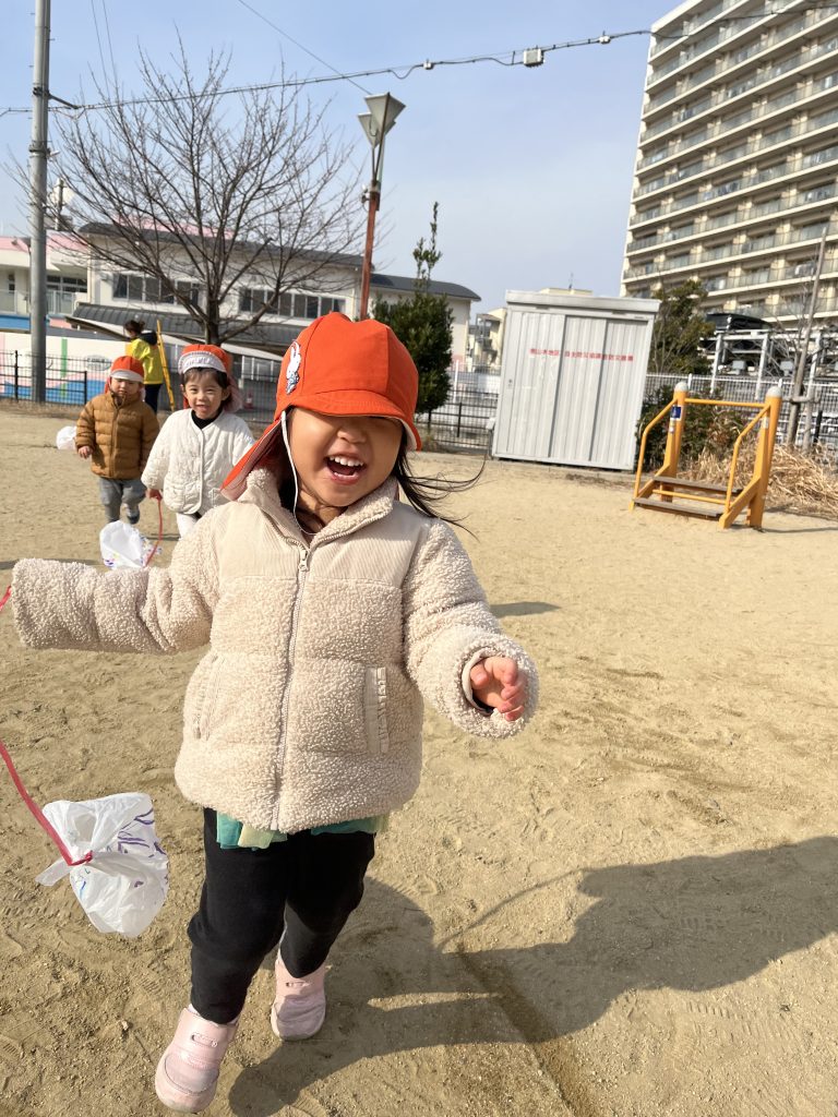 いちご組さんもりんご組さんを追いかけるように凧揚げをしてたり、探索を楽しんでいます🌱