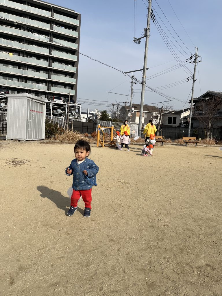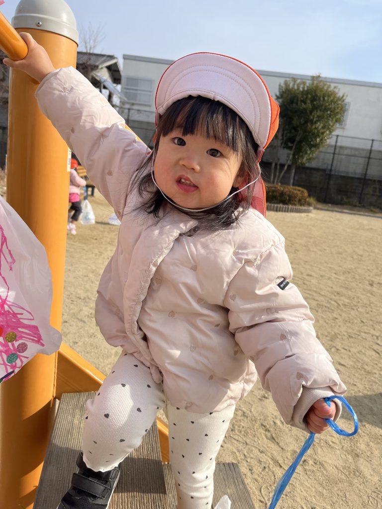 遊具をお友だちと順番こして使ったり、冷たくなった遊具を触って「わ〜ちゅめたい!」と発見を楽しんでいましたよ!!👀