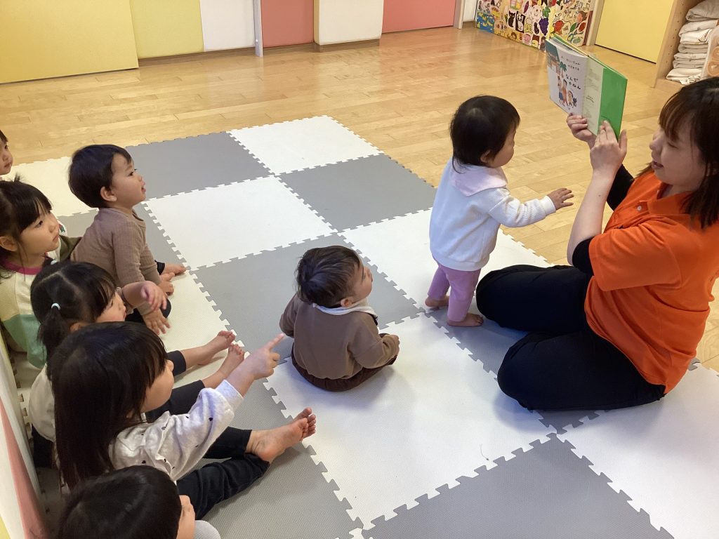 0歳児さんも「なんでやねーん」とつっこむお友だちの姿にケタケタ笑い、笑顔いっぱいの絵本タイムとなりました📚