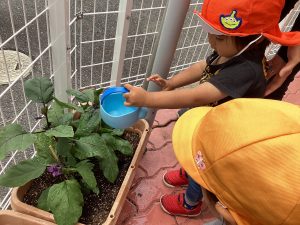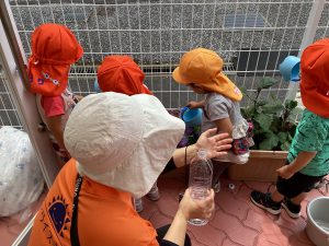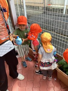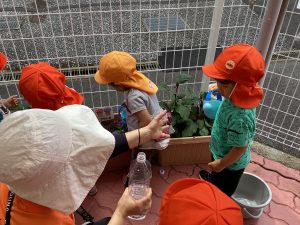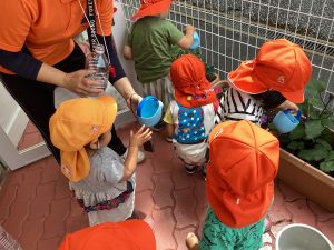 お野菜さん「喉かわいてるね〜?」「お水くれてありがとう❤️」と先生が話すのをよく聞いてくれている子どもたち!
