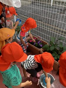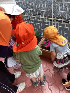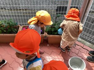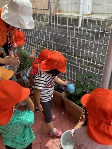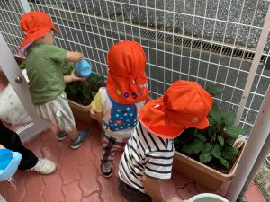 お天気が良い日☀️はみんなで水やりをして「大きくなーれ!」と掛け声をしながら水やりをし、成長を一緒に心待ちしています♡