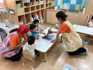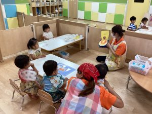 絵本を読む前には子どもたちが大好きな手遊びをして絵本の時間に入り込めるようにしていますよ❕❕