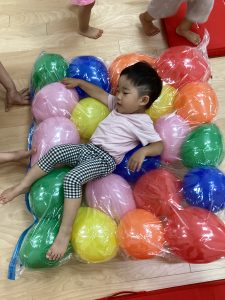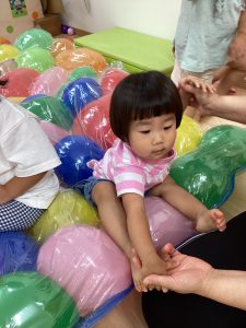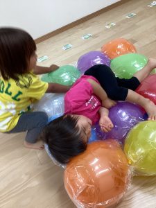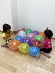いろんな色の風船が入っているので色あてクイズもしているお友だちもいました