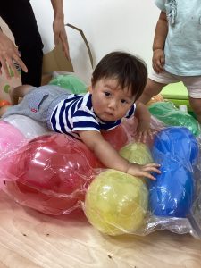 今週は風船マット??で楽しく遊ぶ子どもたちの様子をお届けしますね✨
