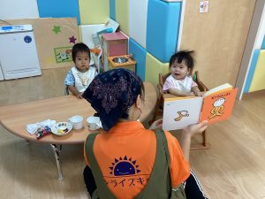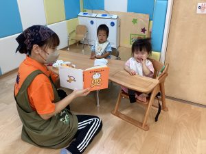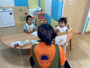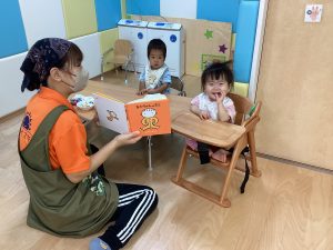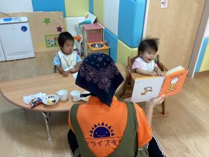 絵本を読み聞かせてもらう子どもたちの様子です✨