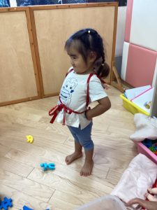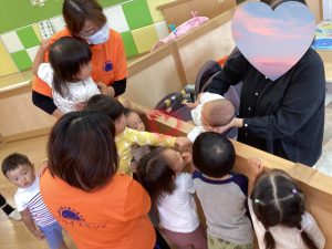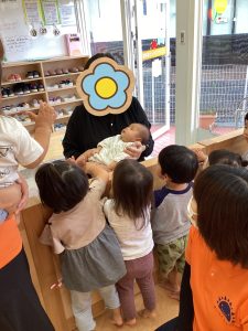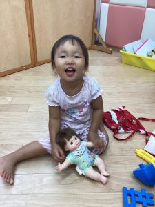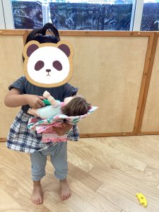 最近はお人形を赤ちゃんのようにおんぶ紐でおんぶしたり、玩具のミルクを飲ませてあげる様子がたくさん見られます😊微笑ましい子どもたちのやりとりにいつも癒されています💓