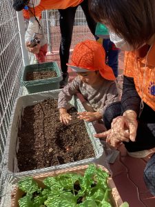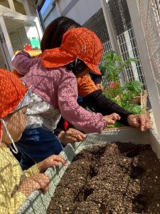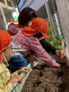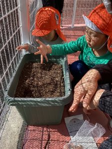 年齢はまだまだ小さいですが生き物が成長する喜びや、命の大切さは、植栽や絵本等保育の中で理解する機会はたくさんあります😃
